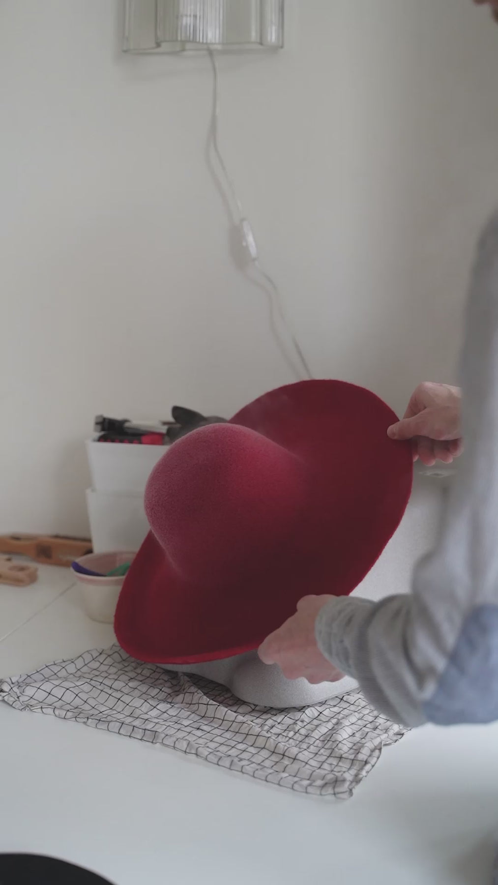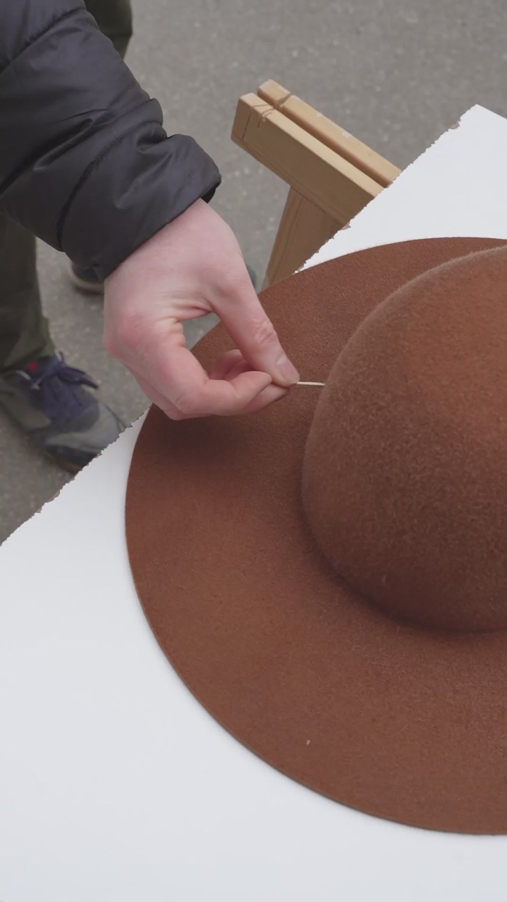 The course is split into two days. On day 1 you get an introduction to hats and the anatomy of the hat, as well as a closer look at hat-making techniques. When you've chosen the material and color you will steam and block your hat to the right size on a wooden block, where the drying process will be going on overnight. On day 2, we remove your hat from the block, sew in a leather sweatband, give your preferred shape to the crown and brim, and finally, we add details and finish your hat to perfection.